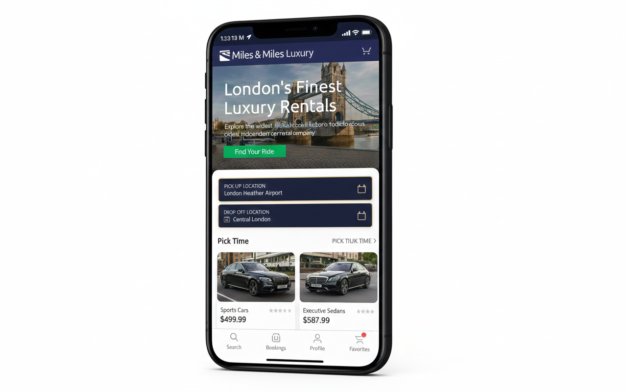 Miles & Miles, lüks araç kiralama deneyimini dijitalde yeniden tanımlamaya odaklanan bir konsept uygulama. Marka algısı, güven duygusu ve rezervasyon akışındaki friksiyon noktalarını çözmek için uçtan uca kullanıcı yolculuğu, wireframe’ler ve yüksek sadakatli prototipler üzerinde çalıştım.